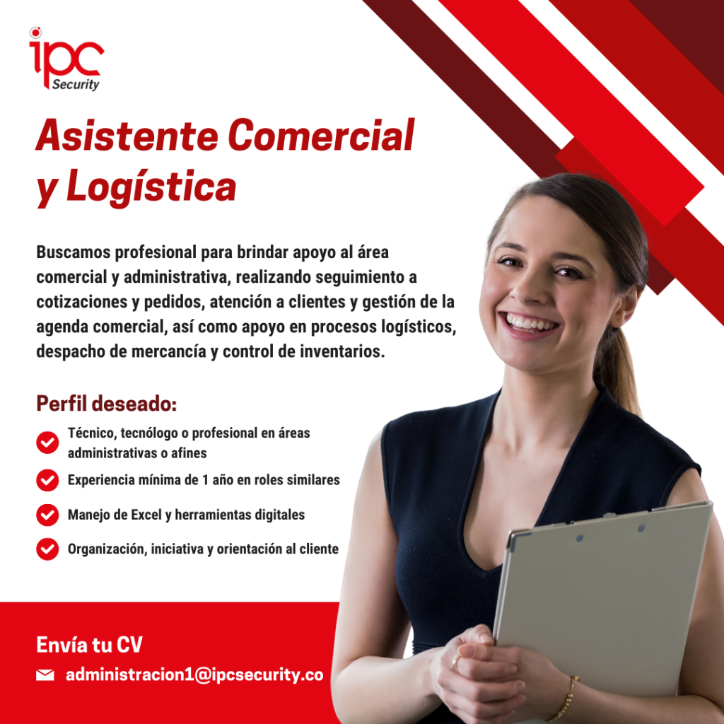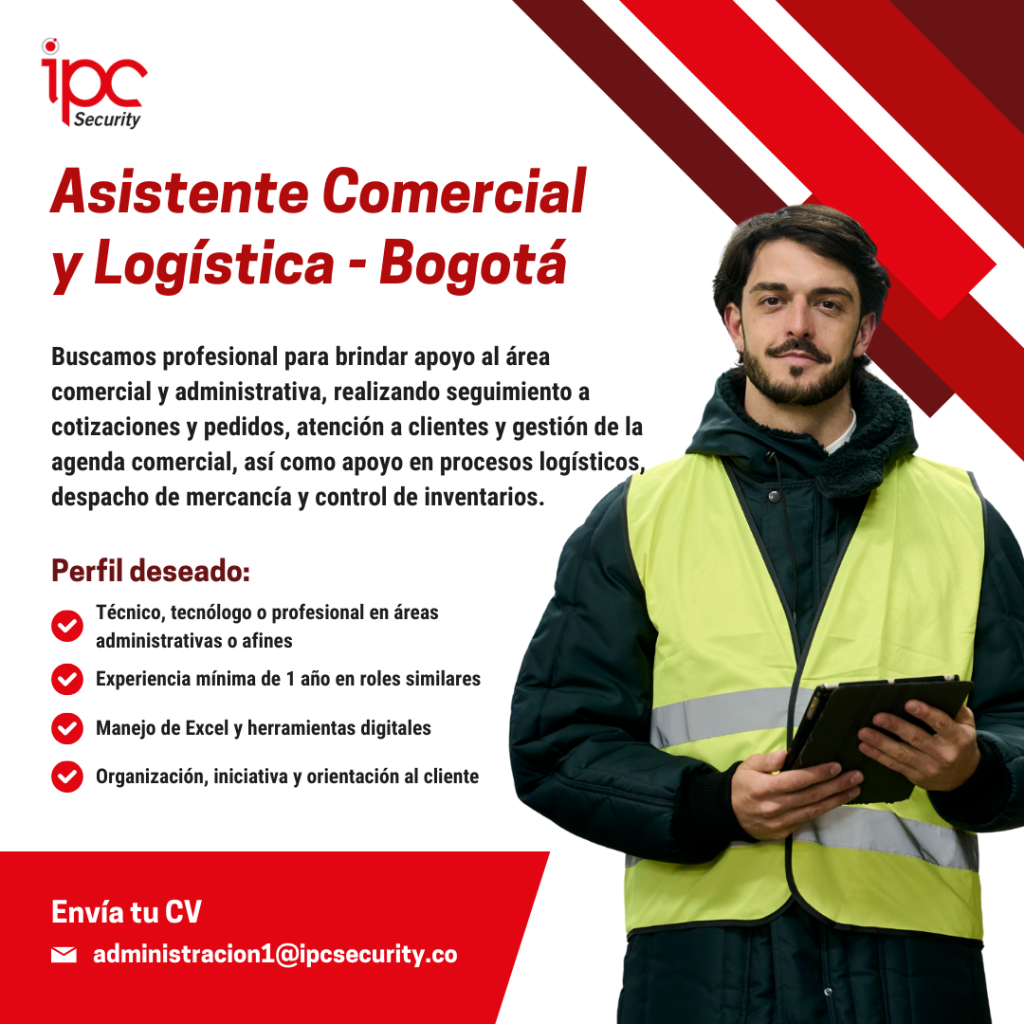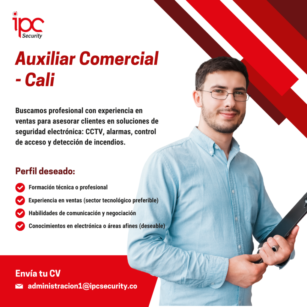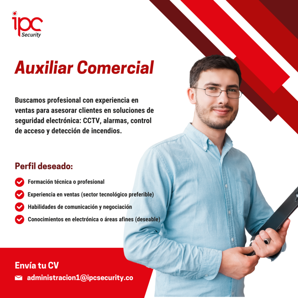 ¿Tienes lo que buscamos? Envía tu hoja de vida al correo «administracion1@ipcsecurity.co» con el asunto «Asesor Comerical» y únete a nuestro equipo.